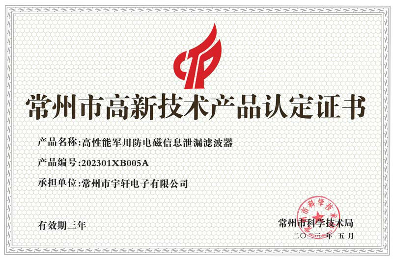 高新技術產品認定證書