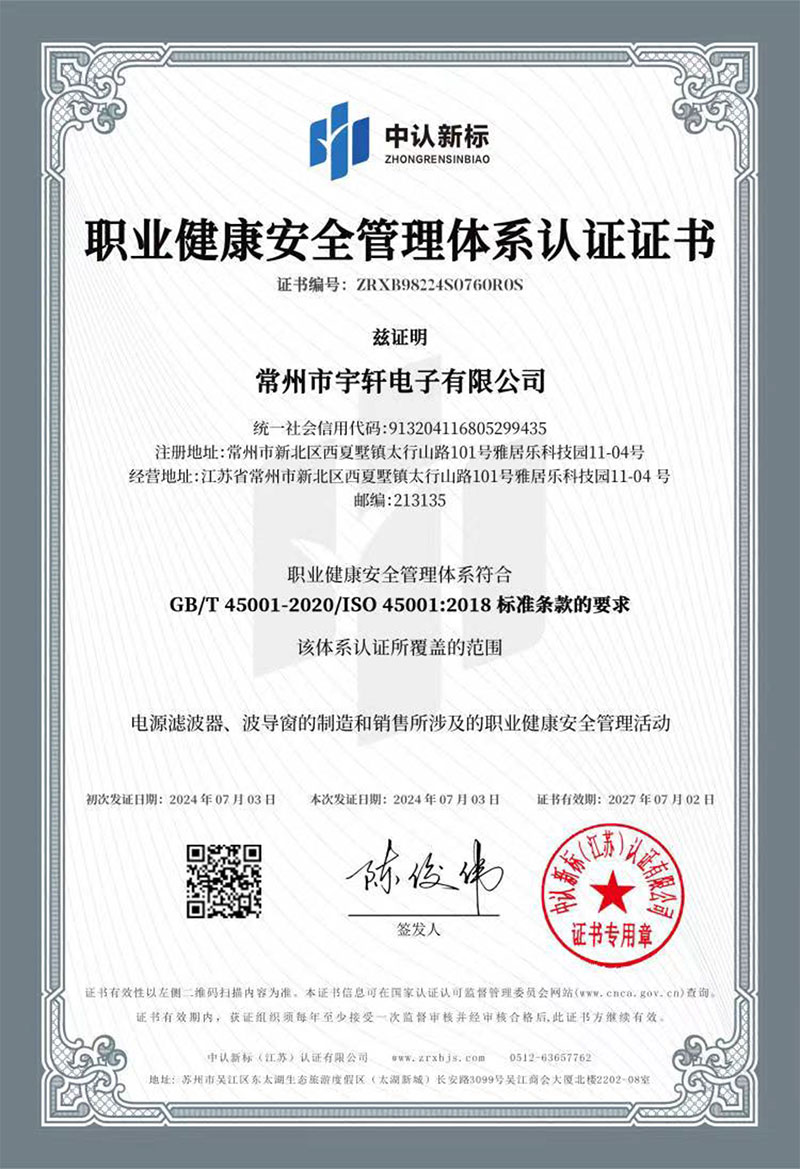 濾波器波導窗--屏蔽效能檢查報告