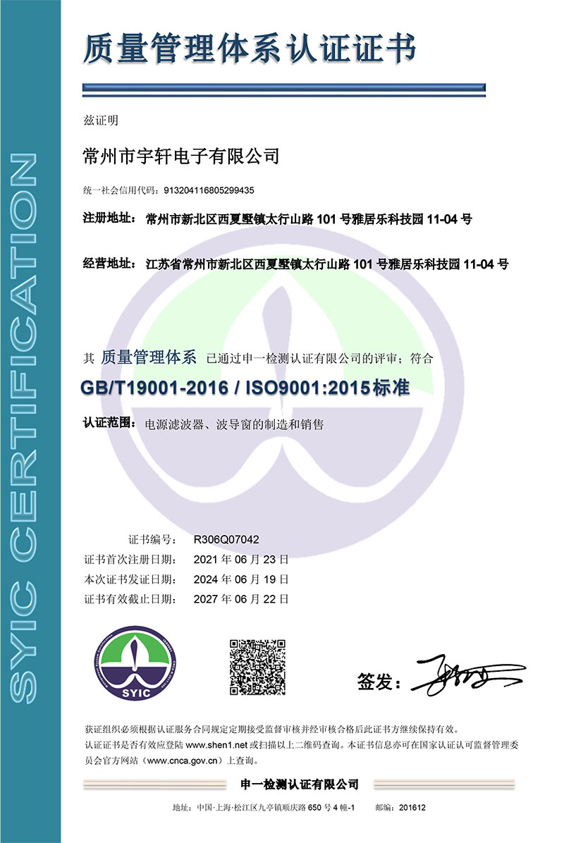 質量管理體系認證證書